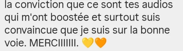Oui, et c’est tout le principe d’Harmonie & Réussite. L’approche est conçue pour s’intégrer facilement dans ton quotidien, même si tu es très occupé. Ce qui compte, ce n’est pas la quantité de temps passée, mais la qualité de ton engagement . Chaque jour, tu réalignes ton énergie, lèves des blocages et avances de manière structurée vers ta prospérité intérieure et professionnelle.